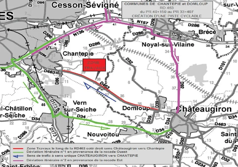 Ces travaux impliquent la fermeture d’un sens de circulation : Le sens Châteaugiron vers Rennes est maintenu et le sens Rennes vers Châteaugiron est fermé. Un itinéraire de déviation est mis en place durant les travaux, du 31 mars au 30 mai 2027.
