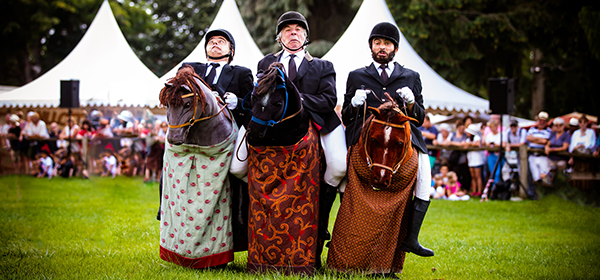 Trois fameux écuyers français vont exécuter une démonstration de dressage. Malgré quelques ratés, ils gardent imperturbablement la French attitude.