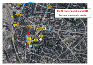 La circulation et le stationnement seront interdits. Une déviation est mise en place à l’itinéraire suivant :